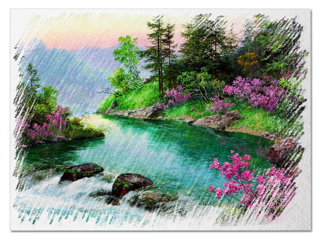 Como ya ha sido contado, el pequeño Luedau empezó a pintar a muy temprana edad, primero las paredes de su casa, lo cual le costó más de una reprimenda. Para plasmar su arte utilizó la arena de los caminos, pero sus obras eran efímeras, nadie tenía cuidado con ellas. Muchas veces quedaban destruidas por las pisadas de los transeúntes y las rodaduras de las carretas sin ni tan siquiera haberlas terminado, lo cual frustraba mucho a Luedau. El siguiente paso de su arte le llevo a recoger piedras y minerales de diferentes colores y distintas tonalidades con ellas hacía murales realistas de Kattak o Kheleb-Dum. Estas obras eran algo menos efímeras, los kathenses apreciaban más belleza en ellos. Así que Luedau tuvo un maravillosa idea: iba a vender su arte. Ofreció a los vecinos de Kattak hacerles los murales en sus jardines, alejados de pisadas y carretas, la propuestas tuvo una buena recepción y muchos contrataron al joven Luedau. Había conseguido sus primeros ingresos, aunque no tardaría en gastarlos. En seguida acudió a ver a Morigan y compró lápices, pinceles, pinturas, pergaminos… se hizo con un caballete y por fin pudo practicar el arte de la pintura. Que sus obras fueran permanentes le permitió revisarlas, encontrar errores en sus trazos, perfeccionar las tonalidades de los colores, en definitiva, mejorar sus cualidades como pintor. Su rincón preferido para dibujar siempre ha sido el Bosque de Naindel, justo a la orilla del río. Nadie sabe cuantas veces pudo Luedau dibujar ese paisaje, muchas de sus obras las destruyó el mismo Luedau porque consideró que no mostraban con suficiente realismo la belleza del entorno. Lo que sí sabemos es cuales fueron los primeros cuatro cuadros que Luedau encargó a Slahma que le enmarcara. Hoy puedes ver esos cuatro cuadros en la taberna de Kattak.
