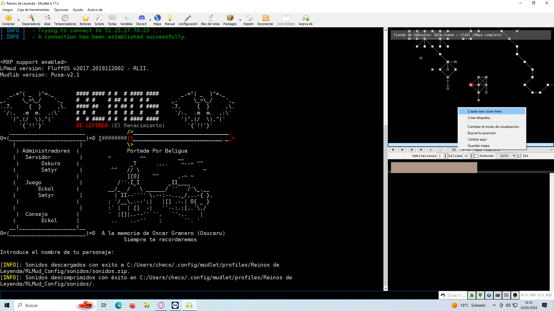 No se como se puede hacer para actualizar el mapa, la verdad es que no tengo problema en irlo actualizando con lo que veo que no esta, en la zona de Eldor, la carpa principal falla (faltan habitaciones. otras han cambiado de nombre y la cárcel ni aparece). El otro día intente añadirlas, me llevo un rato hasta que entendí como funcionaba, pero pensé que me iba a guardar los cambios… pero al reiniciar estaba todo como antes.